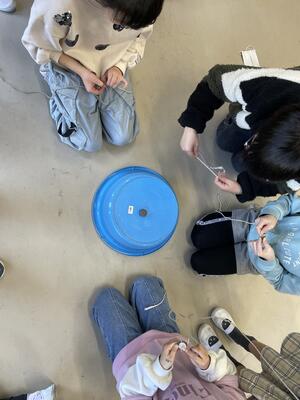 3年生の3学期最後なので、総合学習のまとめとしてベーゴマ大会を行いました。