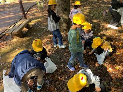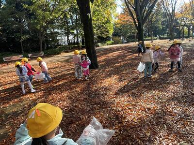 広い公園内でどんぐりを拾ったり、きれいな落ち葉を拾ったりしました。