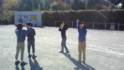 太陽の位置と影の位置を友達と確認しあい、太陽とは反対の位置に影ができることに気づきました。