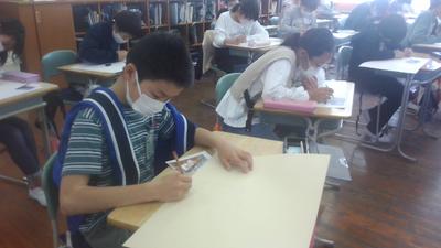 どんな風景や模様を彫ろうか考え、心に残った出来事や自分の好きなものなどの下書きを行いました。