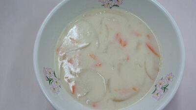 黒パン・ウインナーソテー・ゆでキャベツ・豆乳クリームスープ・牛乳 投稿: 戸塚南小学校 (11:36) カテゴリー: 今日の給食 黒パンにキャベツとウインナーをはさんで食べてもおいしいです。 豆乳クリームスープ -