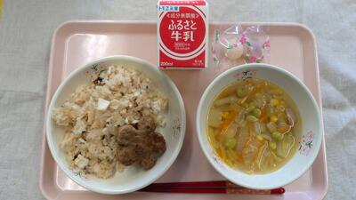 鯛めし・牛乳・花型ハンバーグ・みなみんスープ・紅白大福 投稿: 戸塚南小学校 (02/26) カテゴリー: 今日の給食 鯛めし 花型ハンバーグ みなみん(カラー)スープ 紅白大福 今日は開校記念日を祝う「お祝い献立」です。 招待給食も行い、各クラスお客様といっしょに祝いました。 -