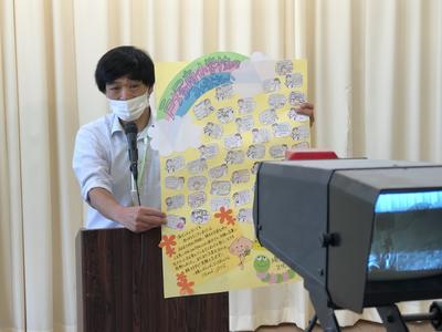 1学期も残りわずかです。あいさつ名人を目指して、一つでもレベルアップできるよう頑張ってください。これで、校長先生のお話を終わります。