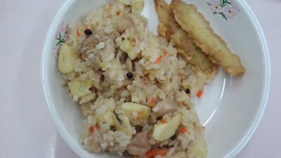 くわいごはん・牛乳・わかさぎの天ぷら・みそ汁 投稿: 戸塚南小学校 (2025/12/17) カテゴリー: 今日の給食 くわいごはん わかさぎの天ぷら みそ汁 くわいを切った状態です。これを揚げて、炊き込みごはんに混ぜます。 くわいはさいたま市で生産されたものです。 豆腐101丁を切っている作業です。 戸塚南小に納入してもらっている豆腐は、少し固めです。 Tweet -