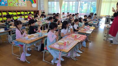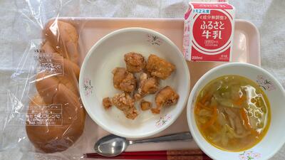 ツイストパン・牛乳・とりのから揚げ・野菜スープ 投稿: 戸塚南小学校 (04/14) カテゴリー: 今日の給食 今日から1年生の給食が始まりました。 牛乳パックを開いて、飲む練習 パンの袋を開けて、ちぎって食べる練習など ゆっくり説明を聞いて、給食の食べ方を覚えていきます。 Tweet -