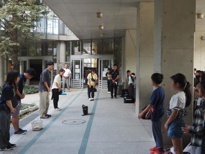 郷土資料館の先生方から、ベーゴマの回し方やひもの巻き方のコツを、わかりやすく教えていただきました。