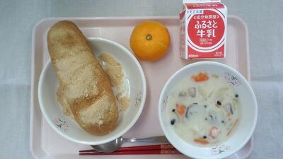 3年生で「すがたを変える大豆」を学習するころなので、きなこを使った揚げパンです。
